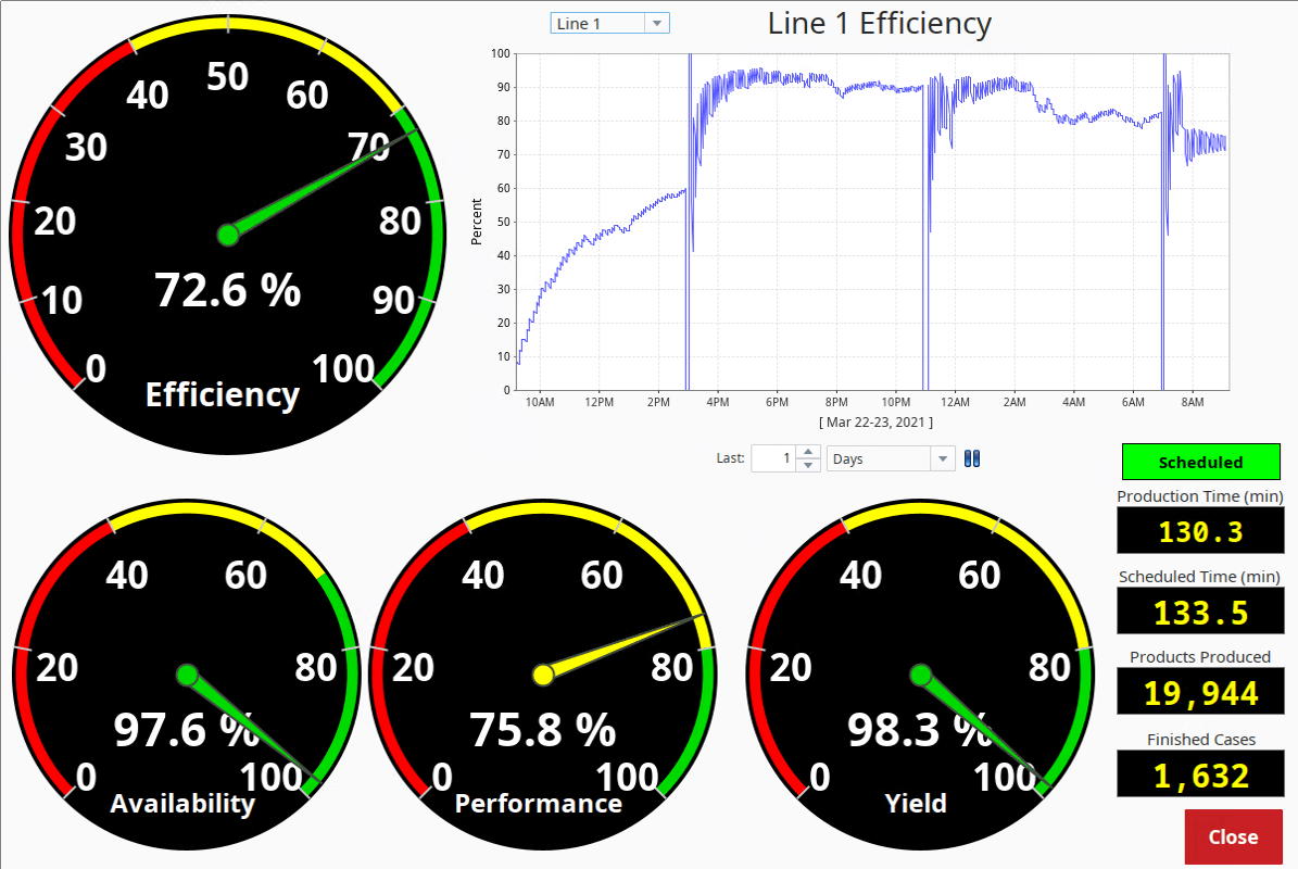 Data validation and recording is becoming increasingly important to our consumers, especially in the food and beverage industry. Up until this project, this customer’s only way of linking the business side to the production side was a paper log entry from the operator at the end of the shift. Now, the business side knows in real-time, down to the case how many more cases are needed before a production order is complete. This information allows the business to make real time decisions, while reducing overages and shortages, quality hold periods and product recall periods.